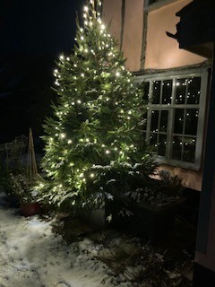 Exterior illuminated Christmas Tree December 2025